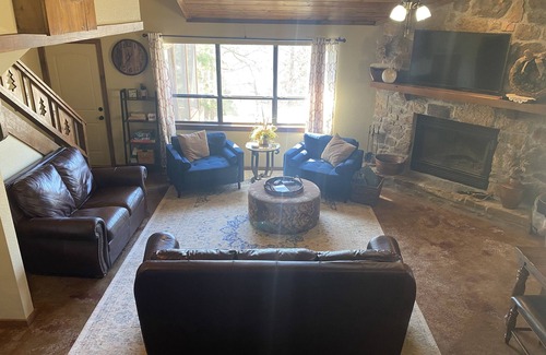 The property is on the SW end of Lake Tenkiller & just a few hundred yards to the lake & boat ramp. Our cabin has an open floor plan, the perfect landing spot for a large group or family looking for a little extra space. With 5 BR's, 3 BA & screened in porch there is plenty of space to relax. Outside we have a fire pit with seating & a gas grill. We are located within walking distance of Soda Steve's and Fin & Feather & just 45 minutes to the Illinois River for rafting, kayaking & swimming.
