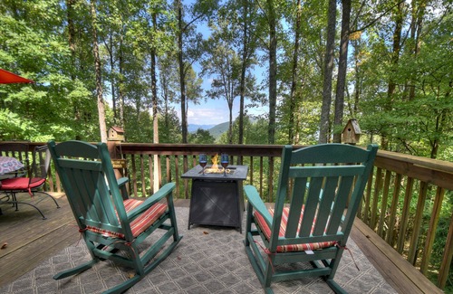 Getaway to the picturesque beauty of the North Georgia Mountains with Wind Rush, a charmingly decorated Ellijay cabin rental boasting breathtaking views and a tranquil ambiance. This cozy retreat offers an oversized deck, providing ample space for relaxation while enjoying the gentle mountain breeze rustling through the trees. Immerse yourself in the serene mountain surroundings with a dip in the inviting hot tub or unwind by the gas fire pit with a glass of wine from one of the local vineyards.