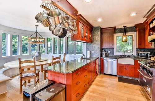 •Oversized dining table that can seat up to 12 plus breakfast nook that can seat up to 8 more people.