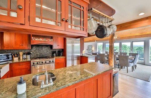 The aspiring chef of your group will love preparing tasty recipes in our fully equipped kitchen with professional appliances, before sitting down to enjoy the feast at our large dining room. In the warmer months, head out to the breezy deck to enjoy a juicy steak or burger from the propane grill and calming wooded views. Feel for a camp out? Sit around the fire pit with your friends, tell stories, enjoy the night under the stars, and roast some marshmallows.
