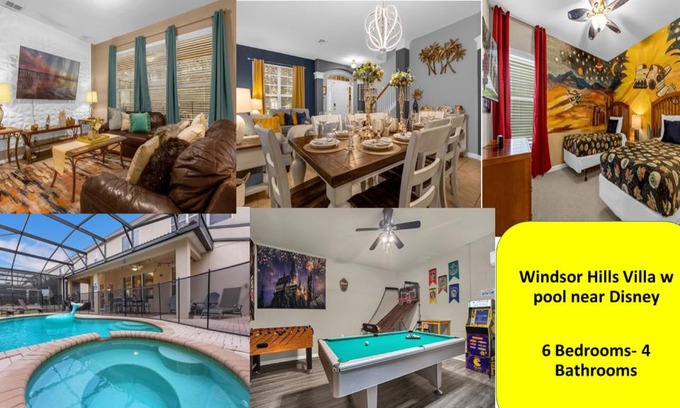 This property offers a private pool, free Wifi, and free private parking. The villa offers an indoor pool, hot tub, and private check-in and check-out. Offering direct access to a patio with pool views, the spacious villa consists of 6 bedrooms. The air-conditioned villa also features a TV, a fully equipped kitchen with a dishwasher, a seating area, washing machine, and 4 bathrooms with a hot tub, a bath, and a shower. The property has an outdoor dining area. You can play billiards at Windsor Hills Villa w pool near Disney. Tulsa International Airport is 71 miles from the property.
