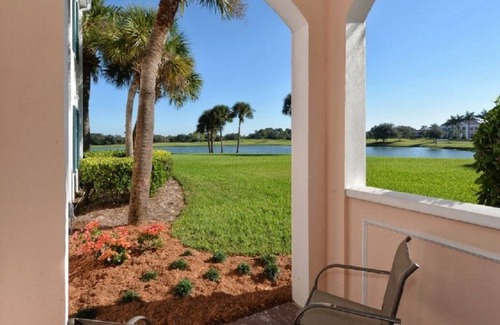 Completely furnished studio with a wonderful view of the adjoining lake and the golf course behind it.