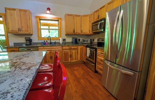 This wheelchair-accessible cabin is pet-friendly (pet fee applies*) and is located in Lumpkin County near Dahlonega. Whether you're here to tour the wineries or just want to stay in and soak in the hot tub, this cabin is for you.