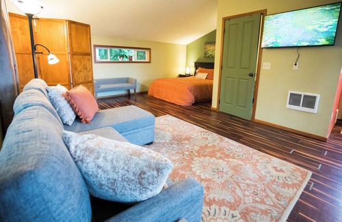 Beautifully decorated for a relaxing stay. Separate entry means you have complete privacy, even your own private upstairs deck - which has the best view on the property!