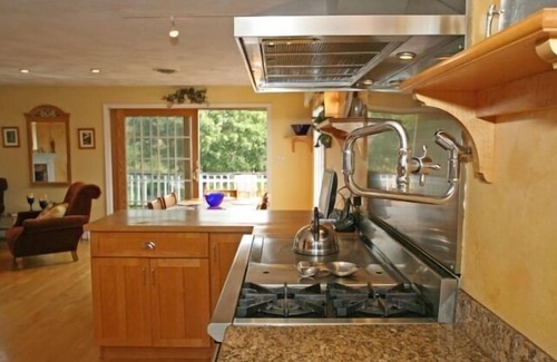 Housing accommodations are a perfect set-up for the extended family or share with the best friends. This location contains 4000 sq/ft. of housing for your enjoyment. This is one of the biggest houses available in the area. Once you enter the driveway and proceed up to the house you will immediately feel like you are on vacation and ready to enjoy your stay. There are numerous outdoor custom built-in mahogany sitting benches and patios to enjoy the beautiful weather and enjoy the wonderful landscape from the deck swing. As you walk-in the first floor entrance into the spacious custom tiled foyer entrance, you will immediately feel the beach house charm! The rest of the first floor contains an expansive in-law/au-pair suite, which is on your left down a few steps into a very large queen bedroom with a sitting area with TV and cathedral ceilings. You will also find the separate laundry room off the entrance foyer. To your right you will find two more large bedrooms and two custom full-size bathrooms as well. Don’t forget the additional Wifi equipped office space which can be used as a bedroom if needed. The rest of the first floor living room contains a large TV, and a spacious and comfy living room set, and don’t forget you can always challenged each other at the 3-in-1 game table (your choice of pool, ping pong and air hockey) Once you climb the stairs to the second floor you will find the gourmet kitchen featuring a world-class WOLF commercial gas stove. The granite counters, custom cabinets, and oversized chef's gas stove (complete with pot-filling faucet), pantry and stainless appliances completes this home so that it is the perfect place to be the ultimate beach home away from home. Produce your family’s favorite recipes or try some of the great local dining options, its all up to you. Beyond the 8 chair kitchen, you can relax at the kitchen nook by the fireplace, or continue to the formal dining area. The open concept dining room with seating for up to 10 is surrounded on two sides by custom built-in shelving, this in turn leads into the gorgeous Living room where you can view the surroundings from the stunning Palladian windows, surrounding you on all sides. This area doubles as another gathering place to relax with a plush leather sitting area open to the kitchen making it a great space for entertaining as everyone can be together (but still out of the cooks way) in comfort! The king sized master bedroom with cathedral ceilings is located on this floor as well. It contains your own custom full-sized bathroom and another sofa set with a hidden TV, and of course your own large private mahogany deck. The King size bed actually looks small in this space! The house is air conditioned if you prefer, or you can enjoy the sea-breeze air and open the three sets of oversized Anderson sliders. (Five sets if you combine both floors!) Which open onto to the expansive upper mahogany decks, where you can relax on the outside deck furniture and sunbath privately instead of the beach if you prefer? The house has wifi, of course, but bring your cell phone as there is no landline at the house. Plenty of parking in the driveway and lovely landscaping outside! Additionally, Gloucester is becoming a more and more artwork-culturally known area; take a ride to the local artwork shops found around Rocky Neck. Find your next treasure to remind you of your stay. There is everything you would expect for a great ocean beach stay, located only 10-15 minutes drive to Gloucester harbor. Once you experience this vacation house and locale, you will want to return for years to come. Start a new tradition and make a reservation today!