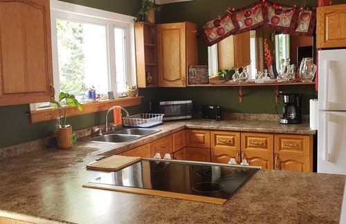 Ice fish in front of house for trout, snow machine to anywhere. Entire house, three bedrooms plus a 4th bed in the den / office. . Fish right off the dock, I can drill the holes. Cross country ski in the wilderness . Have a winter campfire on shore while fishing, hot dog sticks are provided. Den with office desk setup. BBQ on back deck, kitchen has a fridge, stove, coffee machine, kettle, toaster, microwave and all the dishes required. Washer and dryer as well. Extra blankets and towels. Free unlimited WIFI and cable TV. Supper quiet at night and no street lights! Snow machine trails close by. Ice fishing dream area! When there is ice you can fish other lakes as well.