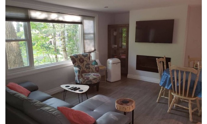 This modern 2 bedroom main floor unit has an open concept design and ample patio space. Enjoy a fire outside while roasting marshmallows or an electric fire inside while playing board games or watching your favourite movie - many games and movies provided.