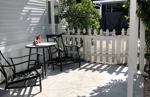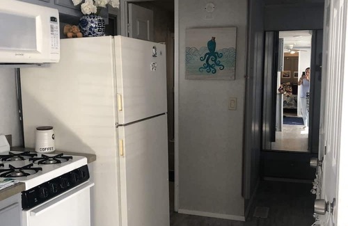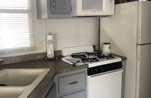 Cozy two bedroom one bathroom trailer with living room sofa bed, sleeps six. Indoor kitchen and outdoor BBQ. Wifi included. Come enjoy warm winter sunsets by the bay, a sight you will never forget or take warm dips in our heated community pool at bay’s edge.