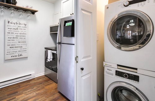 GENERAL: Free WiFi, central air conditioning, electric heating, hair dryer, washer/dryer, hangers, iron/board, linens/towels, trash bags/paper towels
