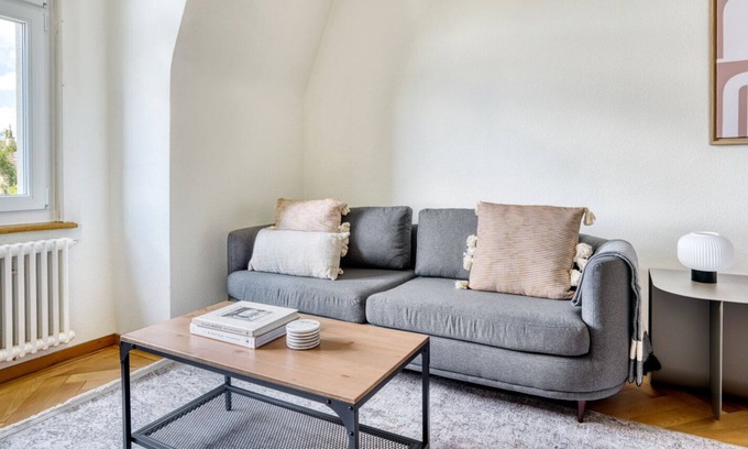 Discover the best of Zurich, with this two-bedroom District 10, Wipkingen apartment with views over the city. It’ll be easy to simply show up and start living in this fashionably Blueground furnished apartment with its fully-equipped kitchen, charming living room, and our dedicated, on-the-ground support. (ID #ZRH33)