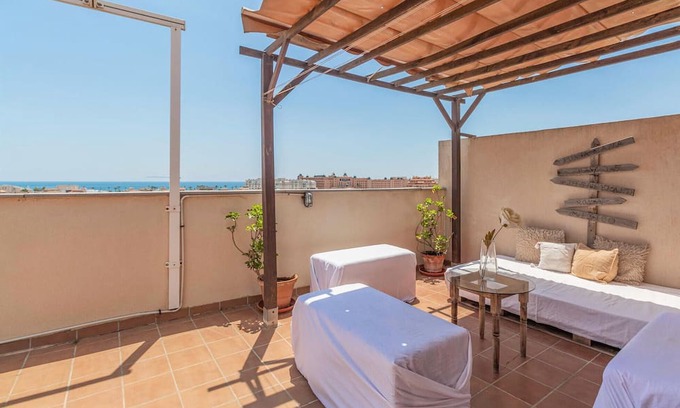 With a beautiful view from the roof terrace over Roquetas De Mar welcomes you this pleasant vacation | Apartment in Roquetas de Mar