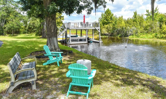 Cast your line or launch your kayak right from this Withlacoochee River vacation rental! This 2-bed, 2-bath Dunnellon home offers both peaceful retreats and lively river adventures. Relax on the 2-level deck, paddle from the private dock, and hook big catches straight from your backyard. When the sun sets, gather around the riverfront fire pit and watch the stars appear. Grab the oars, reel in the fun, and reserve now!