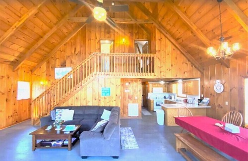 New owners in the private cove behind Flat Hollow Marina nestles on the shores of Norris Lake, making tens of thousands in improvements planned for fall, winter and next season. Under new management beginning mid-august 2021, the amenities and improvements list just keeps growing! The cabin offers sleeping for 16 in 5 bedrooms. Rustic Pine with in the Great Room under cathedral ceilings makes it ideal for family reunions and gatherings of friends.