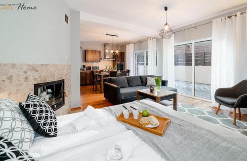 Wonder Home - Villa Vika z ogrodem, z miejscem na grilla i ognisko in Karpacz provides accommodations with a garden and barbecue facilities. There's a private entrance at the apartment for the convenience of those who stay. There's free private parking, and the property features paid airport shuttle service. At the apartment complex, every unit comes with a wardrobe, a flat-screen TV, a private bathroom, bed linen, and towels. There's also a dining area and a fully equipped kitchenette with a fridge, a stovetop, and kitchenware. During the colder months, guests can enjoy winter sports in the surrounding area. The apartment complex also includes outdoor fireplace and a picnic area for a day outdoors. Western City is 2.5 miles from the apartment, while Wang Church is 3.3 miles from the property. The nearest airport is Copernicus Wrocław Airport, 70 miles from Wonder Home - Villa Vika z ogrodem, z miejscem na grilla i ognisko.
