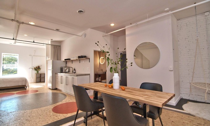 Welcome to Wonder! Wonder is a fully restored, historic 3 story brick building located on Main St. in Honesdale! The first floor consists of an amazing new restaurant Native Honesdale where you can dine and drink in style, and the new bakery Be Kind bake shop so you can wake up to the best new fresh baked goods each morning. The loft is 3600' square feet and professionally designed and furnished by Samuelle Green. The loft can sleep up to 20 adults and offers modern design, 5 and a half bathrooms with walk in multi jet showers, 3 full kitchens with concrete countertops and new appliances, 10' high ceilings, 2 queen beds,1 king bed, 6 queen size sleeper sofas, dining table and chairs, tv, wifi, and completely furnished with luxury linens, towels, utensils and more. Please know this is an open air loft. Bedroom and sleeping areas are separated only by curtains; therefore, there are no formal bedrooms.