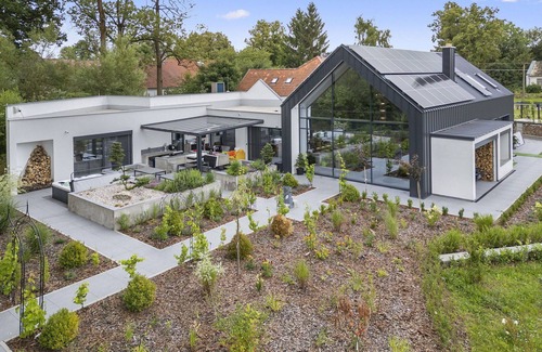 Located in Prostý, Czech Republic, this modern and luxurious holiday development consists of three houses within a resort setting. The property features a main house with an outbuilding, offering a tranquil and sun-filled environment. This vacation rental provides essential amenities including complimentary Internet WiFi access and convenient on-site parking accommodating up to four vehicles.
