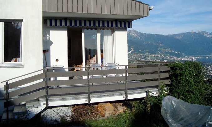Mont Pèlerin 6 km from Vevey: Cosy single-family house "Noisette", 650 m a.s.l 2 storeys, detached. Above Chardonne, in a quiet, sunny position. Private: property 550 m2, terraced garden (fenced). In the house: central heating system, washing machine, drying room. Steep motor access to the house. 4x4 car recommended in winter. Parking at the house, single garage. Shop 6.5 km, shopping centre 6.5 km, restaurant 1 km, café 1 km, railway station "La Baume" 750 m, bathing lake 7 km. Walking paths from the house 1 m. Nearby attractions: Vevey 6 km, Montreux 13 km, Lausanne (Musée Olympique) 20 km, Aqua Parc / Swiss Vapeur Parc 29 km. Well-known ski regions can easily be reached: Rocher de Naye 22 km, Portes du Soleil 46 km, Leysin 44 km. Well-known lakes can easily be reached: Lac Léman 6 km. Hiking paths: Rocher de Naye. Please note: car recommended. Suitable for families.