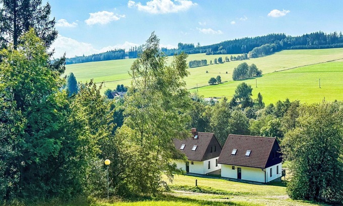 Stárkov Resort offers a delightful holiday rental experience nestled in the tranquil surroundings of Nové Město Nad Metují, Czech Republic. This semi-detached property, built in 1997, is surrounded by picturesque meadows and boasts a range of amenities, including a Swimming Pool, Yard, Internet Wifi, Parking, and Tennis Court. The resort comprises 22 houses, ensuring a peaceful and intimate atmosphere for your vacation rental.