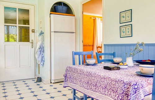 Nestled in the tranquil countryside near Flayosc, Draguignan, France, the "Solena" cottage offers a peaceful escape surrounded by trees. This rustic yet comfortable vacation rental boasts a large, well-maintained terraced garden spanning 3,000 square meters, complete with a lawn and shaded by trees. Enjoy the refreshing swimming pool, measuring 12 x 6 meters with a depth ranging from 100 to 250 cm, featuring an internal staircase and alarm system for added safety. Relax on the terrace, equipped with garden furniture, and take advantage of the on-premises parking for up to three cars.