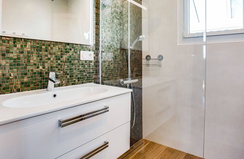 6-room house 160 m2 on 2 levels. Fully renovated in 2019, comfortable and beautiful furnishings: large living/dining room with TV (flat screen). Exit to the garden, to the terrace. Dining room with dining table. 1 room with 1 french bed (1 x 140 cm, length 190 cm). 1 room with 2 beds (90 cm, length 190 cm). Open kitchen (oven, dishwasher, 4 ceramic glass hob hotplates, microwave, freezer, electric coffee machine). Exit to the garden, to the terrace. Bathroom, sep. WC. Upper floor: 1 room with 1 french bed (1 x 140 cm, length 190 cm). 1 room with 2 beds (90 cm, length 190 cm). Bathroom. Electric heating. 2 terraces 15 m2. Terrace furniture, barbecue, deck chairs. Very beautiful view of the sea. Facilities: washing machine, dryer, iron, baby cot for up to 2 year olds, hair dryer. Internet (WiFi, free). Reserved parking at the house. Please note: smoke alarm.