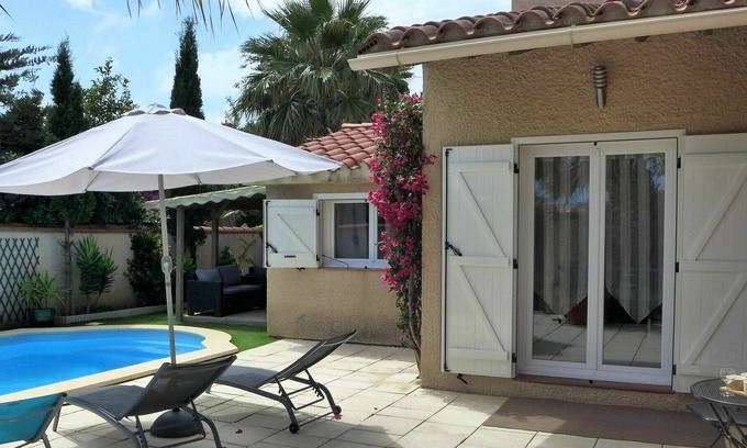 Wonderful private villa for 8 people with hot tub, A/C, WIFI, private pool, TV and patio is located in Sainte-Marie-la-Mer. Wonderful private villa for 8 people with hot tub, A/C, WIFI, private pool, TV and patio provides accommodation, featuring Air Conditioner, Private Pool, Bedding/Linens, among other amenities. This House features Air Conditioner, Private Pool, Bedding/Linens, to make your stay a comfortable one.