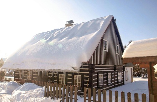 Lánov country house offers a charming vacation rental experience in the heart of nature. This detached, 2-story property, built in 1860 and renovated in 2020, provides a peaceful and sunny retreat in the countryside, just 4 km from Vrchlabí. The house boasts a spacious 500 m² fenced property with a beautiful garden, terrace, garden furniture, fireplace, and a barbecue house. Enjoy the convenience of on-site parking for up to 3 cars and amenities like a sauna, internet Wi-Fi, and a washing machine.