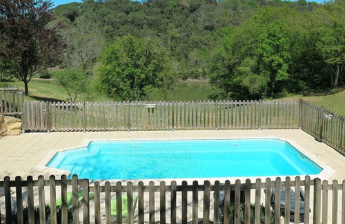 Country house "Le Grenouillet", surrounded by trees and fields. 2 km from the centre of Proissans, 7 km from the centre of Sarlat-la-Canéda, 45 km from the centre of Brive-la-Gaillarde, in a secluded position on a slope, in the countryside. For shared use: natural pond. Private: natural state property 20'000 m2, meadow, swimming pool fenced (9 x 4 m, seasonal availability: 06.May. - 30.Sep.) with alarm system. 300 m long motor access. Roofed, parking (for 3 cars) at the house on the premises. Supermarket 7 km. Nearby attractions: Grottes de Lascaux 9 km, parc du Thot (Thonac) 22 km.