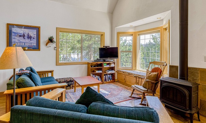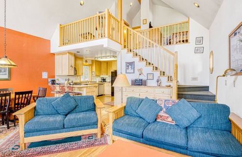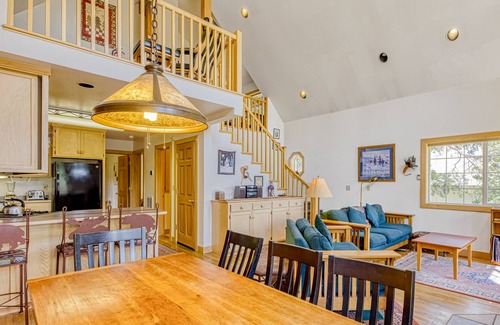 When it comes to ski retreats, it doesn't get much better than Soda Springs, especially when you get to call Soda Skihaus home! With a wonderful lofted layout and classic log cabin accents, you will have no trouble making yourself comfortable. The main floor will be perfect for entertaining and eating together after a full day of adventure, as the open layout of the full kitchen, dining room, and living area all seamlessly flow to one another under soaring ceilings. If you want to grab a bit of fresh air come summer, the spacious deck will be just the place to sip a morning coffee in bliss or cook up a few burgers on the gas grill with a cold beverage in hand. Not to mention the free WiFi, TV, and Xbox 360 will come in handy for keeping the kiddos entertained during downtime!