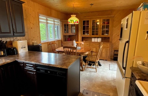 Located in Moonbeam, this cottage is a dream. With 3 bedrooms, including 2 queen beds and 1 bunk bed, our place is perfect for a group of guests looking for an enjoyable and nice stay. You'll find all the necessary amenities like AC, WiFi, heating, a washing machine, and a hair dryer. The bathroom is well-equipped for your needs. Whether you're exploring the lake or town or simply relaxing indoors, our welcoming cottage will help you feel at home while you're traveling in Moonbeam/Kapuskasing Area. Wonderful, Three Bedroom Home on Remi Lake. The Cottage is very bright, with large windows running along one full side. It is well-built and well-maintained of wood construction inside and out. The cottage is spacious with large living areas, a very nice enclosed porch with views of the lake, a long lane and lots of parking. The property is framed with trees, giving the cottage a very peaceful and private feel. There is also a seating area at the lake, a fire pit and a sandy bottom at the water.