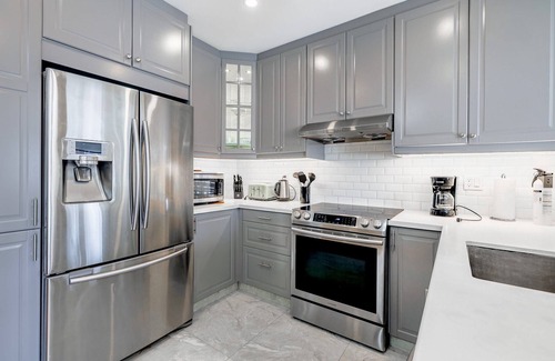 Enjoy a comfortable stay in our modern four-bedroom home in Vaughan, perfect for families. This home accommodates up to 7 guests with 3 queen beds and 14 king bed upstairs, plus 2 queen beds and a pullout couch downstairs. It comes with all necessary amenities and a dedicated work area. Make the most of sunny days by barbecuing in the private backyard. Located near Wonderland, this home is an ideal base for exploring the area.