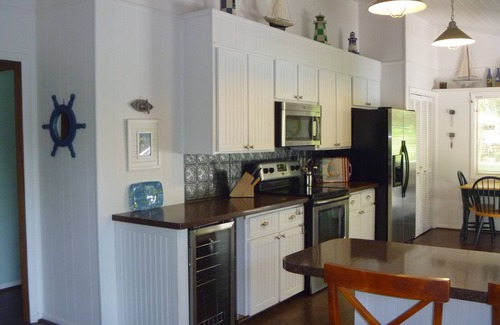 Tucked away in the woods giving a quiet, retreat atmosphere yet minutes from grocery stores, wineries, Bridgewater and Westlake shopping. Completely renovated and spacious kitchen, new stainless steel appliances, wine cooler and quartz countertops with serving peninsula. Vaulted ceiling runs the length of the upstairs living area. Fully equipped with Xfinity WiFi, TV and flatscreens in living areas. Two kayaks provided for guests to explore the cove along with floats and noodles to relax and enjoy the refreshing water.