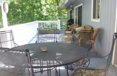Views of the cove, private deck and wildlife abound from the full length deck which also features a covered dining area for 6. A gas grill is available for your use. Relax and float in our quiet cove outside the bustle of the main lake channel or just enjoy the beautiful views from the dock. Dock is partially roofed for shade or sun depending on your mood and has electricity. Savor the early morning sunrise views over the lake.