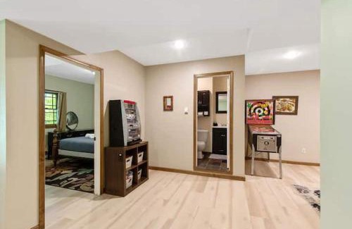 Woodland Cabin Getaway offers accommodations in Greentown, 26 miles from Delaware Water Gap National Recreation Area and 19 miles from Great Wolf Lodge Pocono Mountains. This property offers access to a patio, a pool table, free private parking, and free Wifi. The apartment has an outdoor fireplace and a hot tub. Featuring a balcony and garden views, the spacious apartment includes 3 bedrooms, a living room, flat-screen TV, an equipped kitchen, and 3 bathrooms with a walk-in shower and a hot tub. Featuring air conditioning, this unit has a dressing room and a fireplace. For added privacy, the accommodation has a private entrance and soundproofing. An indoor play area is also available at the apartment, while guests can also relax on the sun terrace. Kalahari Waterpark is 19 miles from Woodland Cabin Getaway, while Pocono Raceway is 28 miles from the property. Wilkes-Barre/Scranton International Airport is 40 miles away.