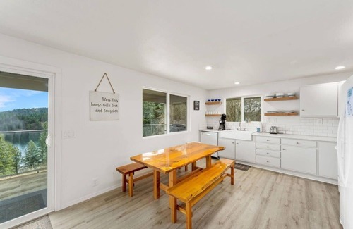 Bring your friends and family together toWoodland Escape. This home has everything you`re looking for on your lake vacation in Coeur d`Alene. The top floor has an open layout and the large picture windows bring the outdoors inside where you can comfortably enjoy them in any weather. A large upper deck has seating for the whole family and a grill for homemade burgers or steaks.