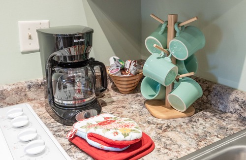 This upper unit of the property features an open plan living/dining/kitchen area with a comfy couch, 2 chairs, a dining table with seating for four, a fully-outfitted kitchen, and high-speed wifi that makes streaming your favorite content on the smart tv (Roku) or your preferred device a breeze. The primary bedroom has a queen bed and the living room has a newer full-sized futon. The full bath has a combo tub/shower. The apartment is set up perfectly for 2 but can comfortably accommodate 2 additional small children or single adult on the futon in the living room.