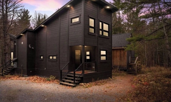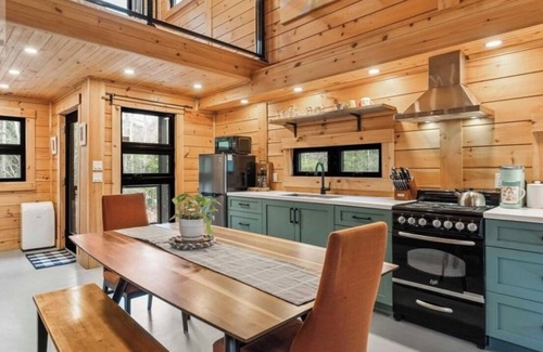 Enjoy the sounds of nature when you stay in this unique tiny house. This 600 sq ft home is nestled amongst 10 acres of towering trees, granite rock and trails to explore. The tiny home will not feel so tiny once inside. With high ceilings, plenty of windows, and surprisingly spacious rooms - it is the perfect hideaway for those wanting to unplug in Muskoka.