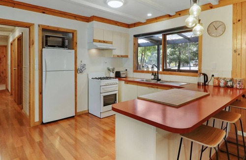 A fully-equipped kitchen (cooktop, oven, microwave, fridge) plus BBQ on the deck means effortless cooking and shared meals with views of the bush.