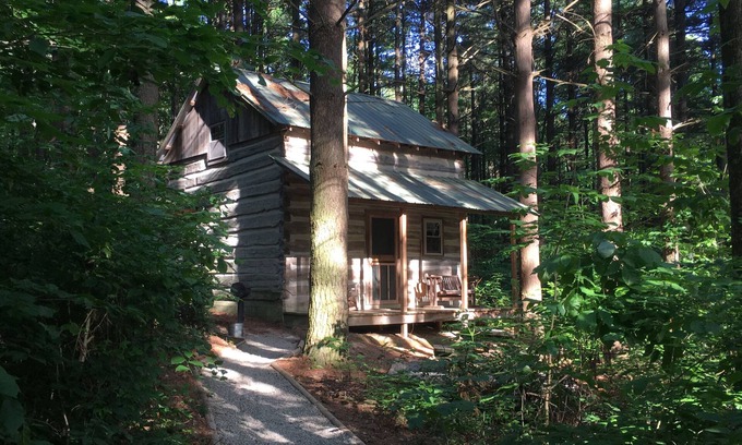The cozy Green Log Cabin is the perfect romantic hideaway for couples looking for some quiet time alone. You can easily shut out the rest of the world in this cabin that features a living room, bath, dining area and a fully equipped kitchen on the main floor and a cozy king bed up in the loft. Gently tucked into the sensuous pine forest and the rolling hills of Southeastern Ohio, you can relax and unwind together by swinging on the front porch while watching for shooting stars, luxuriating in your own private hot tub and snuggling in front of the stone fireplace.