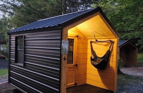 Each tiny house is ready to be booked and offers a picnic table, barbecue, and fire pit. Come check us out and enjoy a great stay!
