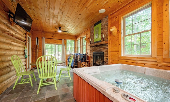 What an adorable log cabin home! Whitewater Lodge is a three-bedroom log home in the picturesque Yellowstone Village cabin community in the central Deep Creek area. Inside, the charming wood styling, open layout, and fun vacation amenities transform this charming little cabin into a modern retreat that feels like home. Highlights of Whitewater Lodge includes a native fireplace in the great room, indoor hot tub room with second fireplace, lower level recreation room with wet bar and foosball table, and outdoor covered porch, charcoal grill, and upper level balcony. Reserve your stay today!