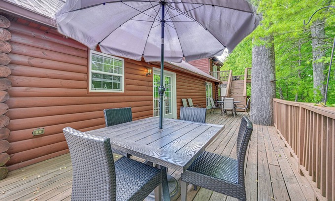 Fish the day away at this stunning Burnside vacation rental cabin. Boasting 5 bedrooms, 2.5 bathrooms, and an impressive outdoor area, ‘Jr’s Place’ offers the perfect setting for your next action-packed gathering. After sipping your morning coffee on the deck, hit one of the nearby hiking trails or head down to the shore for a peaceful afternoon swim. At night, enjoy a cozy al fresco dinner by the fire, then challenge your loved ones to a game of air hockey. Your lakefront retreat awaits!