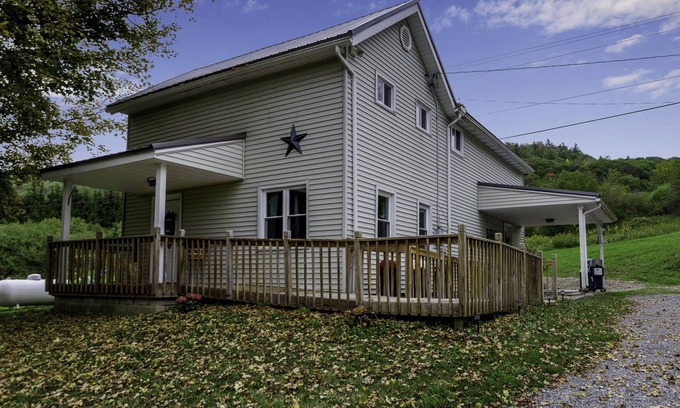 Idyllic home in Cuba, NY awaits you! This 5 bedroom, 2 bath fully renovated beauty offers all of the comforts of modern living in a picturesque, rural setting. Packed with all of the amenities you and your family could think of, with 5 acres of land for you to explore. Just minutes down the road from a full access barn filled with animals for you and your family to enjoy. Nearby is Cuba Lake and all of the attractions the Southern Tier has to offer. Perfect for families and couples alike, you can choose to stay for the rest and relaxation or take advantage of the nearby attractions and activities available year round. The home is literally a breath of fresh air, with gorgeous views from the brand new full deck. There is a grill for your barbecuing and a hot tub for you to relax in, plus a full movie theater room in the newly finished basement. We look forward to having you stay at our home that was made for your comfort!
