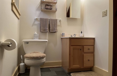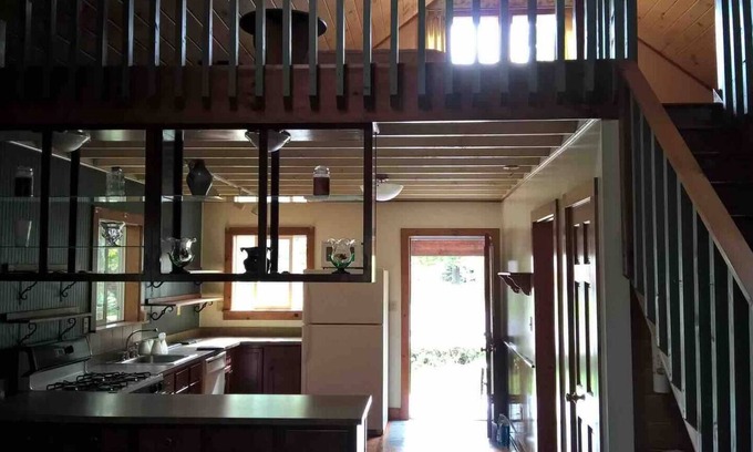 Guests will have the whole chalet to themselves, plus the parking spaces located right next to the building. Guests are welcome to enjoy the whole outdoor space and lawn, which is shared with the duplex also on the property. Each of the three units on site has its own fire pit, grill, and set of Adirondack chairs.