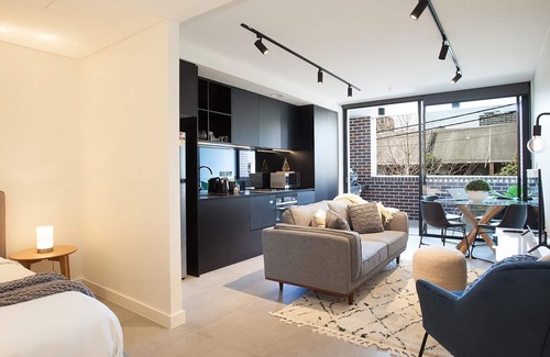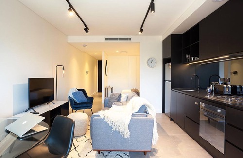 This spacious studio offers a suave sanctuary close to some of Sydney's best attractions. A bold black kitchen is equipped with everything the cook needs, with a stylishly furnished lounge suite inviting you to get comfy. At the end of the day relax out on the balcony with a glass of crisp white wine in hand as you plan your next day adventures.