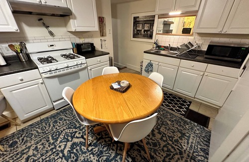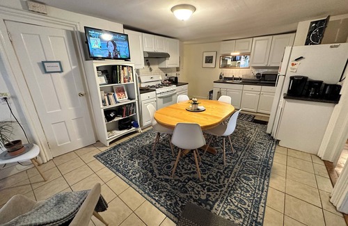 This private, 1st floor apartment has three bedrooms available to sleep up to 7 adults. In each of the three bedrooms there is a queen-sized bed. There is a daybed in the open kitchen dining, and living space. This is a twin-sized mattress and sleeps children best. There is one private bathroom in the apartment. To stay comfortably reach out, if you would like, before you book to tell us a bit about your planned visit and number of guests. We offer to customize your stay for your New Haven visit. Please add the number of guests total to your inquiry for the reservation when booking. This will give the base price. The number of guests, regardless of age other than infants, is for the number of people staying. This helps us recommend and tell you about the sleeping spaces.