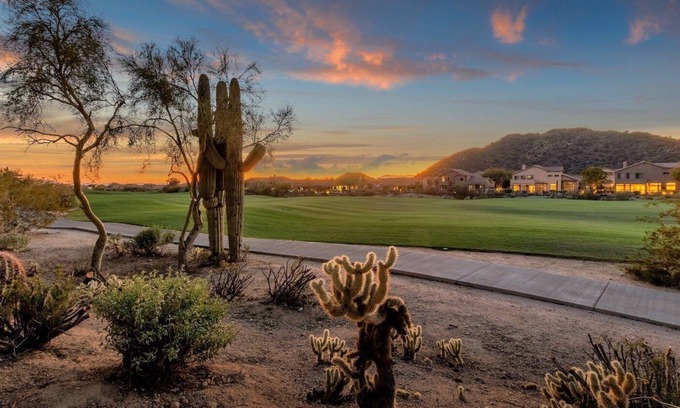 A 12’ glass door opens to a sparkling pool, golf course and mountain view. This home is surrounded by the natural beauty of the Sonoran desert. It is quiet and serene, a perfect escape from the daily grind.