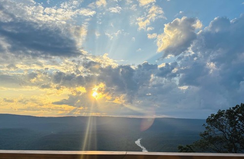 Hawk’s Nest. Look At That! Wow! Seeing the view makes one say words like these. The views and home are absolutely stunning. Morning, noon, night, winter, spring, summer, & fall are always offering serene & unique views. The pictures do not do the view justice. The spacious Cabin is a new build, designed & built by the owner. Built for family bonding, relaxing, comfort, playing, and entertaining. Truly a place to decompress in this inspirational space to breath in the beautiful landscape and views. Nature Lovers Paradise. Pet Fee for your furry friend. Please include him/her when booking your stay. No dogs over 50 lbs. only one pet is allowed. Rough Road the last two miles. Closest grocery is 30 minutes away. Cameras-3 still life cameras along the driveway and 1 live camera above the front door. Guests may unplug module (in kitchen) upon arrival. Please select “travelers” when booking, to add pets and additional guests.