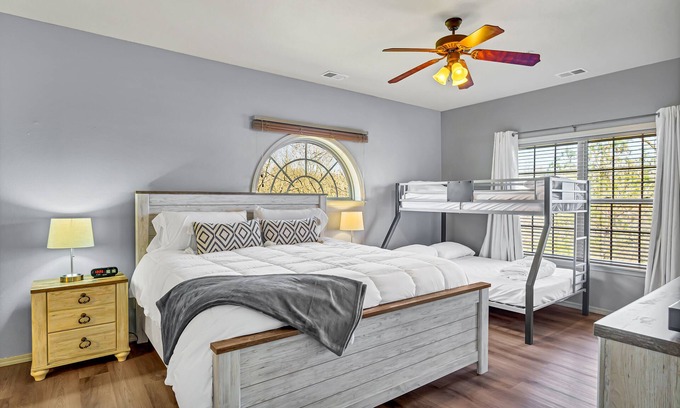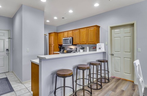 We just bought this amazing condo, but have owned property in Branson for years! No stairs and 100% walk-in gorgeous condo in Stonebridge with 2 king suites and a 2 queen suite, all with ensuite baths. The master suite also has a twin over full bunks. New beds, new flooring, completely updated. Fully stocked kitchen and we try to think of everything you will need. Just bring food.