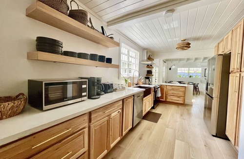 This secluded-chic hideaway is clean|bright, w/peaceful vibes, cozy new stylish furniture, spacious open floor plan, 30ft ceilings, 100ft palm trees + tropical lush landscaping.