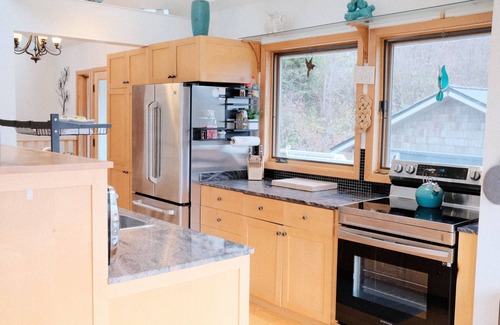 Welcome to the Shake and Shore vacation home, where you will discover stunning views of both the mountain and ocean.